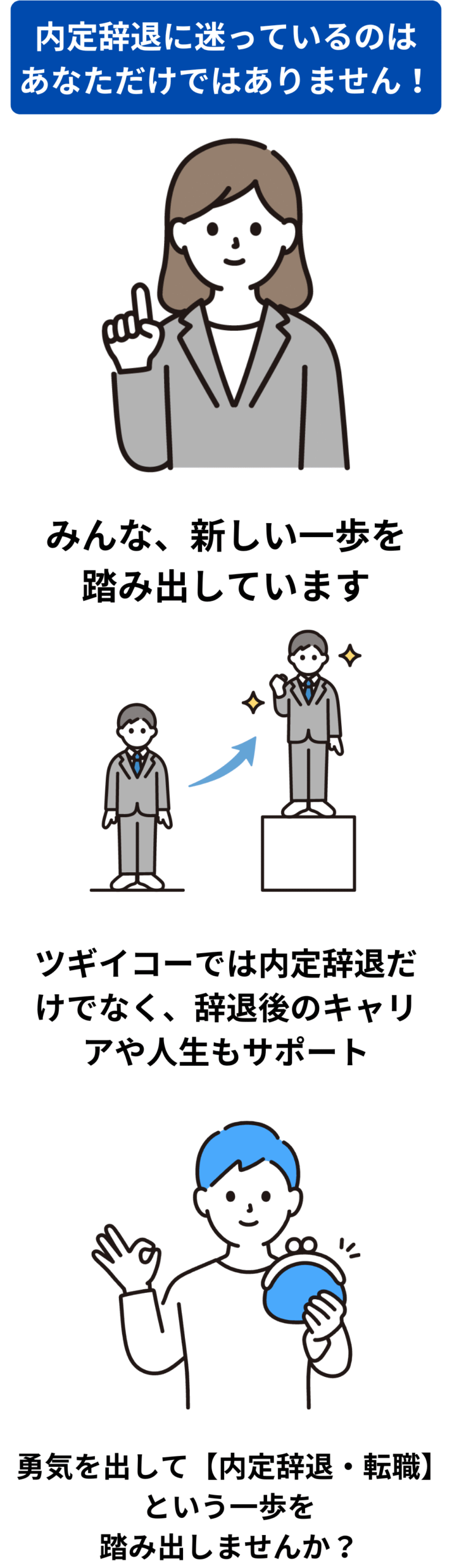 ご依頼後は基本的に、会社からの連絡を無視していただいて構いません。こちらに連絡するように依頼するためです。ほとんどの場合は問題ありませんが、無理やり連絡をとってくる会社も中にはあるため、注意が必要です。基本的にご依頼後のやり取りは全てツギイコーが行います。