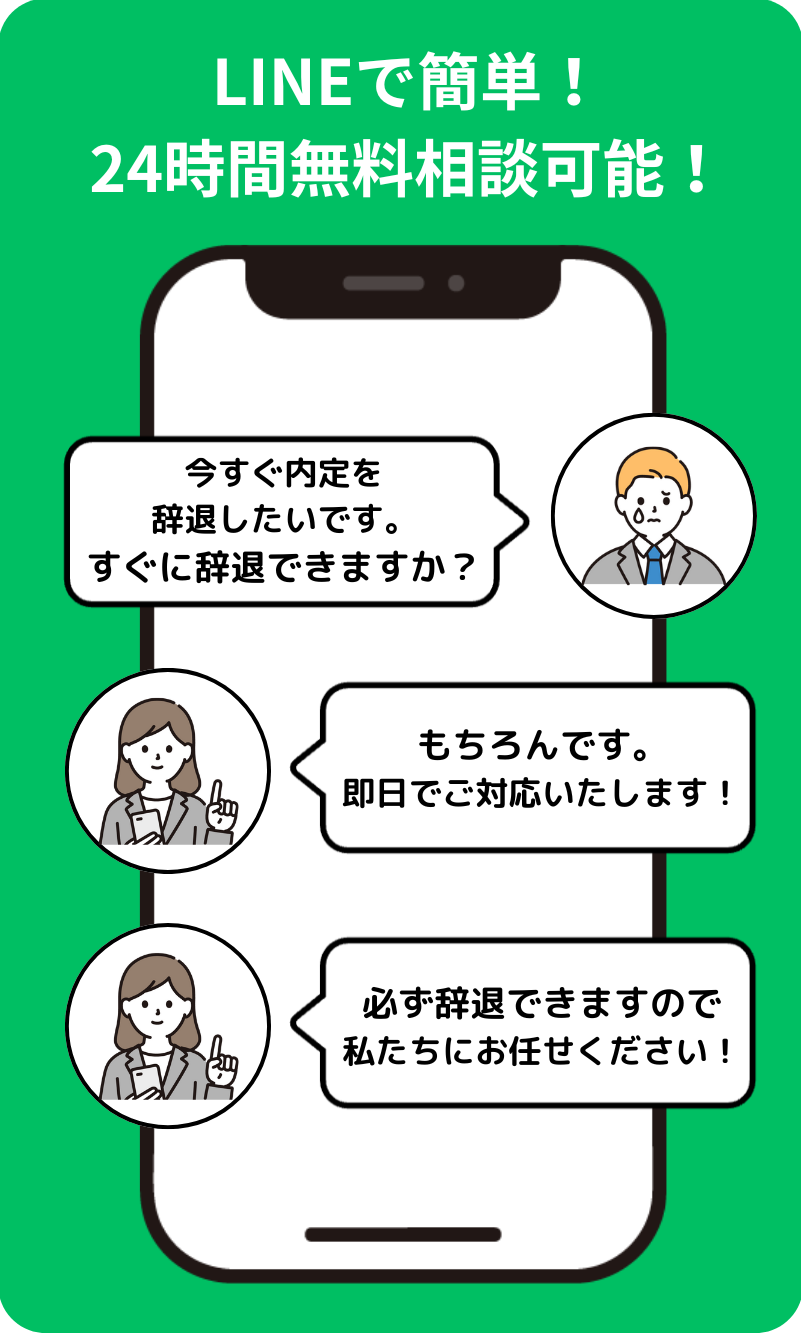はい、内定辞退できます。現状、100人以上の内定辞退を担当して成功率は100%です。万が一内定辞退できない場合は、全額ご返金いたしますのでご安心ください。